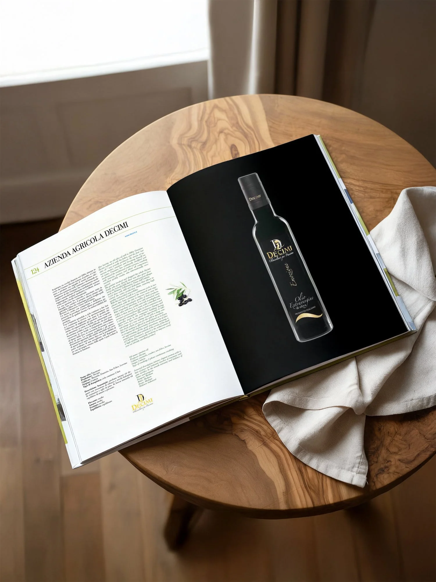 Il formato 40×30 è stato scelto per esaltare la forza delle immagini — veri ritratti di piatti e bottiglie — e per celebrare la dimensione estetica e sensoriale dell’olio italiano.